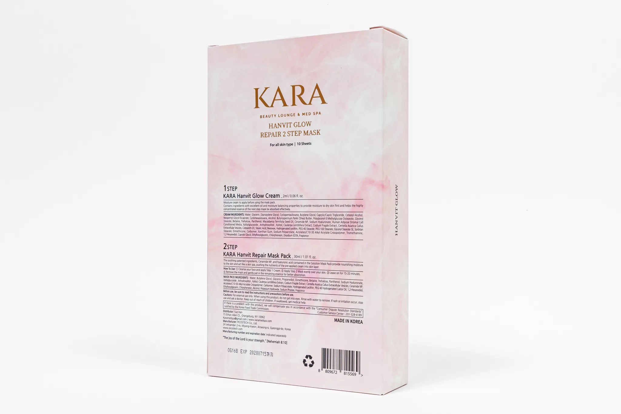 Introducing the KARA Hanvit Glow Repair 2-Step Mask, a skincare innovation developed by Kara Beauty Lounge & Medspa and crafted in Korea.